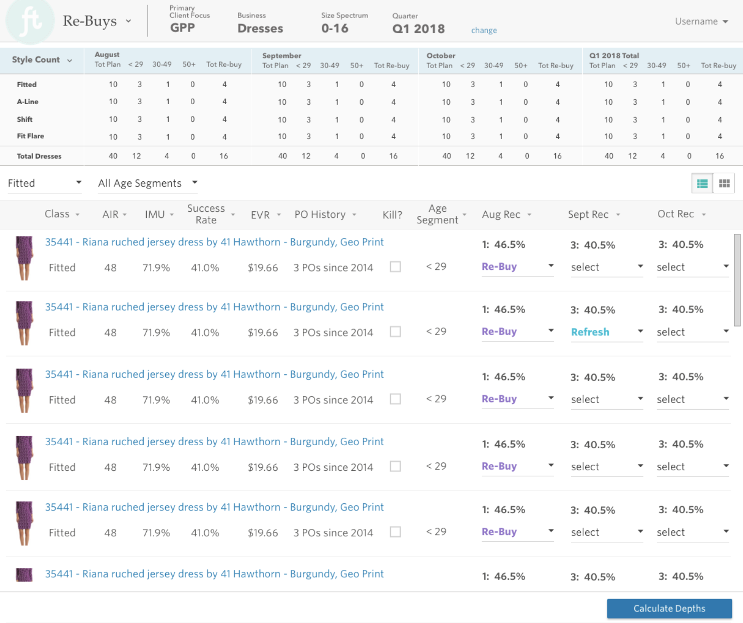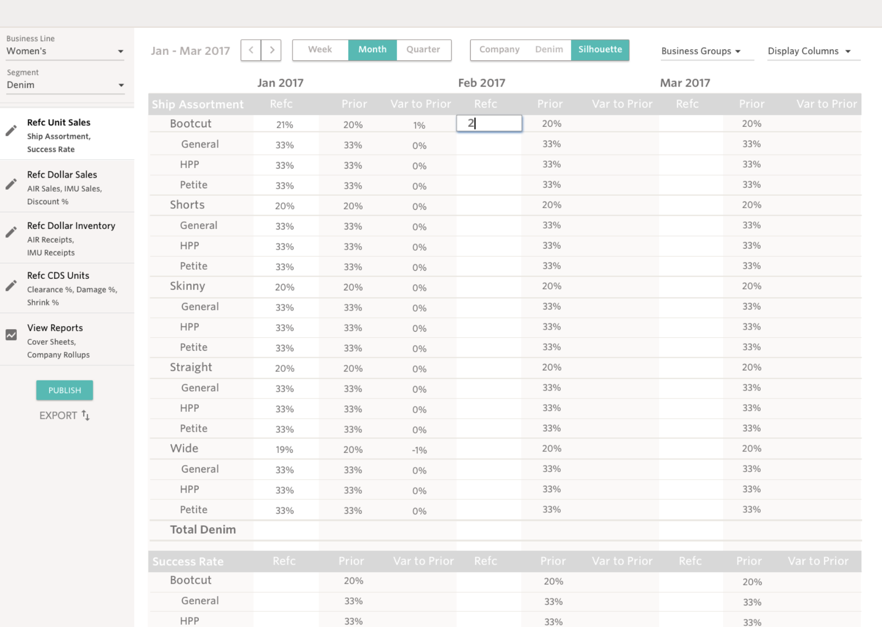 The reforecast tool was used by the merchandising planning team to reforecast the buys for the upcoming seasons.